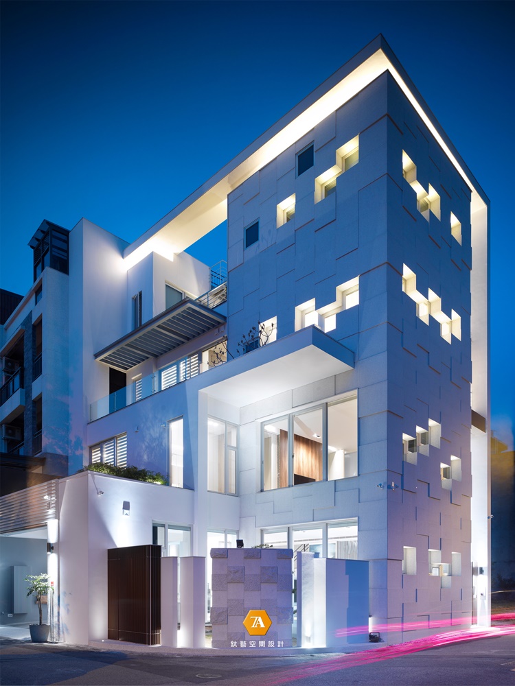 如雕塑般形體的外觀,經過精密計算,讓花崗岩板的尺寸與窗戶尺寸相同,再利用石材不同的厚度,呈現如雕塑般的外型。而燈光是建築體重要的靈魂呈現。