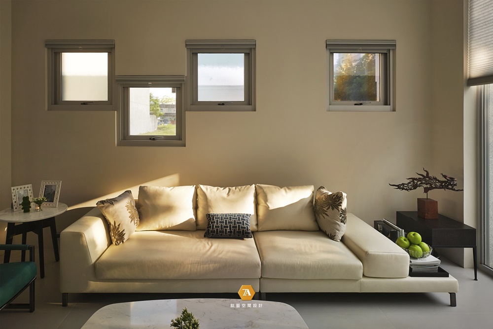 這座淨白的建築雕塑品,講述的是一種空間的美學、人與自然的關係、光與空間的藝術,讓生活場域回歸最純粹的寧靜。看似簡單的裝修,卻運用線條比例及色彩平衡手法,模糊了室內外空間界限,讓居者回到單純的空間互動,恣意享受著自然入室的美好。