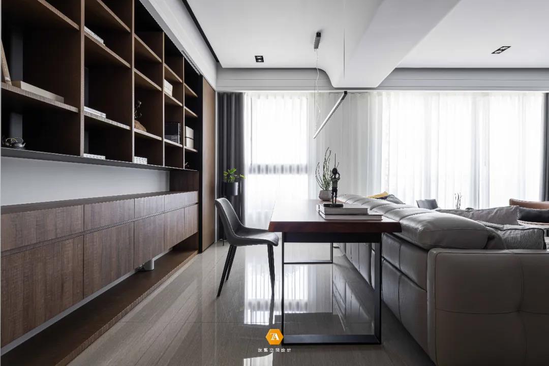 僅管本案的面積不大,但是還是能在空間之中看到設計總監 李羽芝、黃翊峰對於細節琢磨,無論是書櫃的鐵件線條與比例,亦或是電視墻面的幾何分割,都是十分講究的。正因為設計師的這種細心,才能獲得業主的贊不絕口,以無可挑剔的工程品質,奠定下設計師與業主間的友好交情,讓名聲傳播到更遠的地方。