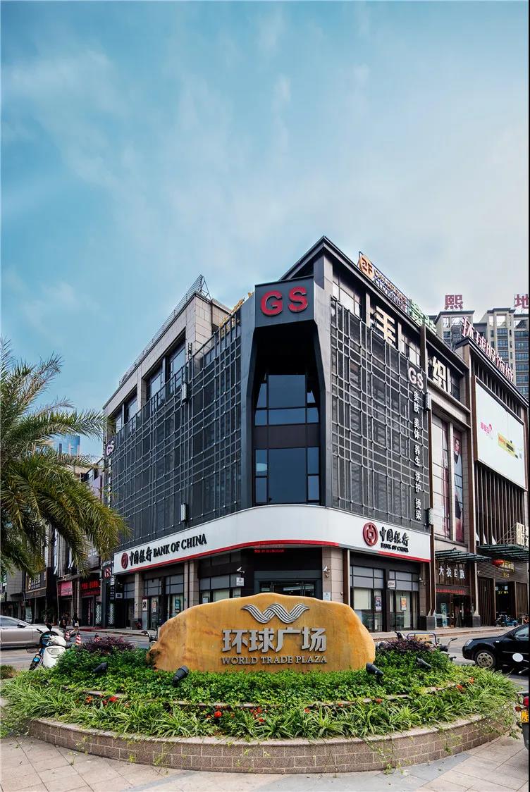 在外觀規劃上將整棟建築物外觀進行改造,鐵藝方通搭配特殊鋼網並采用燈光效果來做出星光燦爛的氛圍,此建築主體的轉角處規劃 GS 的招牌形象,嶄露出時尚簡約的概念。